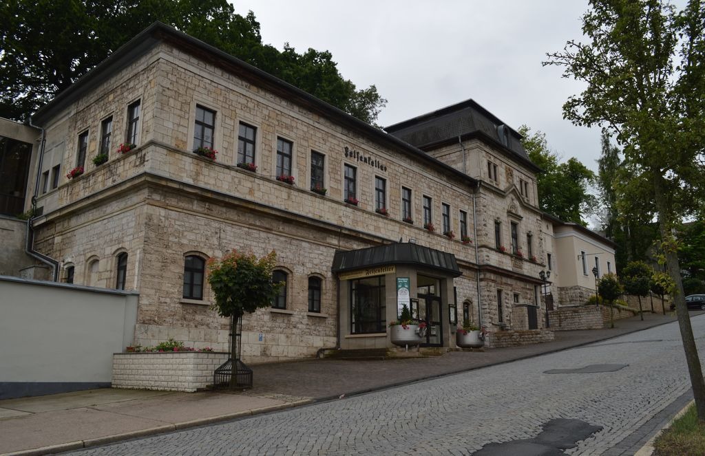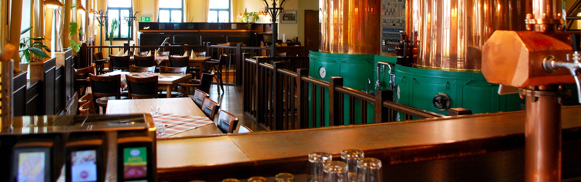 In der Gasthausbrauerei Felsenkeller können Sie auf 140 Sitzplätzen die traditionelle Thüringer Küche und dazu eines unserer hausgebrauten Biere direkt neben den Braukesseln oder mit Blick über Weimar, bei schönem Wetter auch draußen im schattigen Biergarten genießen.
